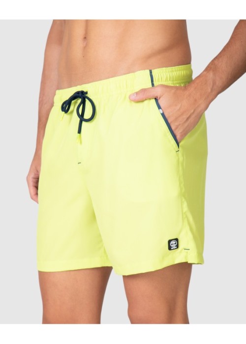 Il boxer mare Massana con dettaglio laterale lime si distingue per il suo design pulito e moderno. La stampa laterale aggiunge un tocco di colore vivace senza eccessi, mentre la presenza di spandex nel tessuto garantisce elasticità e aderenza perfetta in ogni movimento. La cintura elastica con cordone aggiustabile e le tasche laterali completano un boxer funzionale e di tendenza, ideale per mare, piscina e passeggiate estive.