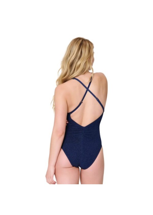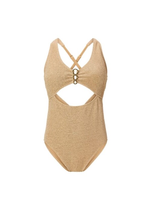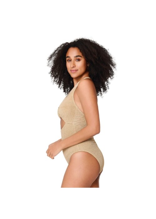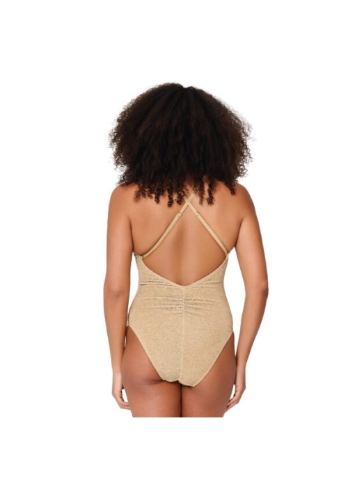 Costume intero donna LingaDore imbottito senza ferretto con spalline incrociate regolabili e dettaglio oro: eleganza raffinata e comfort naturale per il tuo look mare.