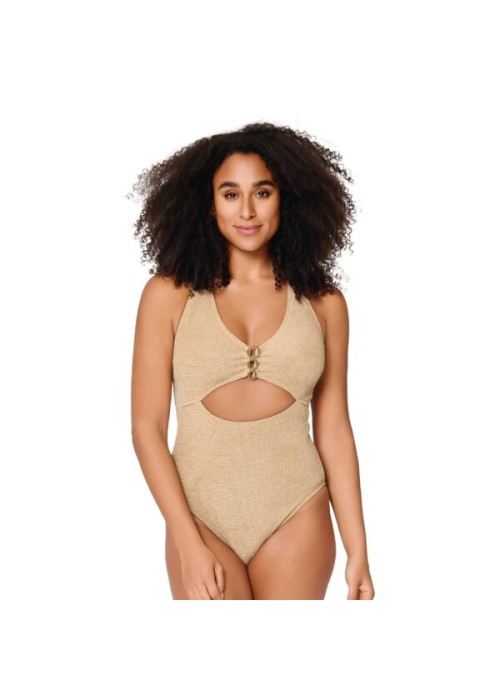 Il costume intero A Touch of Gold di LingaDore esalta la silhouette con linee pulite e femminili, arricchite da un delicato dettaglio dorato. Disponibile in blu scuro o dune (beige), è pensato per un’eleganza discreta e sofisticata.